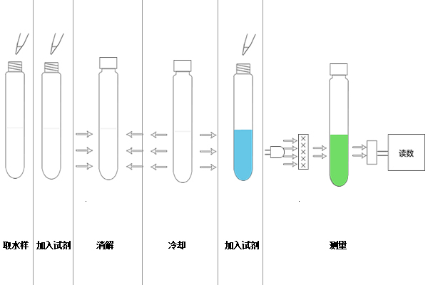 (1)采用《水和废水分析方法指南》第4版中的《过硫酸钾消解法》,加入消解液的水样消解后,磷氧化成可溶性磷,从而通过钼锑抗比色法直读总磷的浓度;